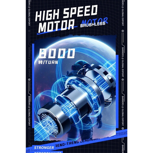 سایر مشخصات80000 RPM: برای کوتاه کردن سریع موهای بسیار ضخیم و سخت استفاده می شود. 75000 RPM: مناسب برای موهای ضخیم و سخت. 70000 RPM: مناسب برای بسیاری از انواع موهای رایج. 65000 RPM: برای موهای نرم و نازک. 60000 RPM: برای حالت دادن دقیق، کوتاه کردن موهای ضعیف یا نازک استفاده کنید ، باتری لیتیومی 2000میلی آمپری ، قدرت 8وات ، ولتاژ 110-220ولت ، 50/60هرتز ،