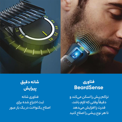 سایر مشخصاتساخت اندونزی با کیفیت بالا و طراحی جدید - پیشرفته ترین مدل سری 7000 فیلیپس که به سنسور هوشمند اسکن سطح پوست برای تشخیص تراکم و ضخامت مو برای تنظیم قدرت دستگاه مجهز شده است - دارای سری موزن گوش و بینی سری بادی گروم سری اصلاح جزئیات و 3 عدد شانه برای اصلاح سر ، 3 عدد برای صورت و 1 عدد برای بدن - باطری با طول عمر بالا که بعد از 4 ، 5 بار شارژ و دشارژ به حداکثر کارآیی میرسد - این مدل صفرزن نیست و مناسب ته ریش گذاشتن و کوتاه کردن موی سر و بدن میباشد – دارای سری بادی گروم - تیغه خودتیز شونده بدون نیاز به روغنکاری که پس از چند سال استفاده مانند روز اول تیز میماند - این کالا با کد MG7920 /15 ارائه شده است که کنار بارکد روی بسته بندی باید MG7920 /15 نوشته شده باشد و 15/ نشانگر شرکت سفارش دهنده و اطلاعات بسته کالا میباشد.