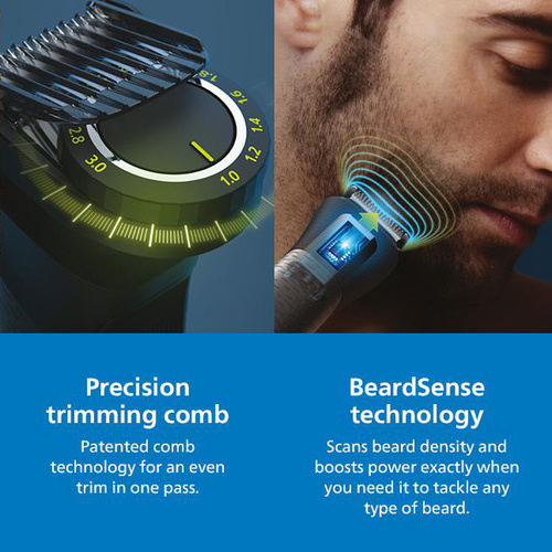 ماشین اصلاح فیلیپس مدل MG7920 از تولیدات جدید و پیشرفته سری 7000 تریمرهای فیلیپس میباشد که با تغییرات اندکی نسبت به مدل قبل از خود MG7910 روانه بازار شده است . سری 7000 تریمرهای فیلیپس کاربردی ترین و پرفروشترین دستگاه های چندکاره فیلیپس میباشند. کیفیت ساخت این مدل بالا میباشد بدنه فلزی با روکشی از کروم پرداخت شده ظاهری زیبایی به ماشین اصلاح داده است که با در دست گرفتن آن حس کیفیت را منتقل میکند . موتور این دستگاه به سنسور هوشمندی مجهز شده که در هر دقیقه بارها سطح پوست را برای تشخیص تراکم و ضخامت مو اسکن میکند و قدرت متناسب را تنظیم مینماید. این دستگاه ضد آب بوده و امکان اصلاح خشک ، تر یا با فوم را دارد . زمان شارژ باطری دستگاه 60 دقیقه میباشد و امکان استفاده تا 120 دقیقه را فراهم مینماید و قابلیت شارژ سریع 5 دقیقه ای را نیز دارد. اندازه اصلاح تیغه اصلی 0.5 میلی متر میباشد و با شانه های متنوع در سایزهای بالاتری اصلاح میکند . این مدل بجز تیغه اصلی دارای 3 سری دیگر میباشد: سری موزن گوش و بینی ، سری اصلاح بدن (بادی گروم) و سری اصلاح جزئیات ضمنا دارای 3 عدد شانه برای اصلاح سر ، 3 عدد شانه برای اصلاح صورت ، 1 عدد شانه برای اصلاح بدن و یک عدد شانه Precision Comb چند سایزه میباشد و نیز دارای کاوری برای نگهداری دستگاه و اقلام همراه میباشد. از مزیتهای دستگاه تیغه خود تیز شونده ی آن میباشد که نیازی به روغنکاری ندارد و بعد از چند سال استفاده مانند روز اول تیز میماند. از ملاحظات باطری دستگاه و کلا برای ماشین اصلاح هایی با مشخصات یکسان این مورد میباشد که هر چه از شارژ سریع کمتر استفاده شود و قبل از اتمام شارژ حتما شارژ شود باعث بالا رفتن طول عمر باطری دستگاه میباشد. در مقایسه با مدلهای دیگر سری 7000 (شامل 7770-7750-7735-7720-7715 ): دو مدل MG7920 – MG7910 پیشرفته ترین دستگاه های این سری هستند که جزء مدلهای سنسور دارد میباشند که با وجود قیمت مناسب به سنسوردستگاههای گرانقیمت فیلیس مجهز شده اند و در مقایسه با مدل MG7910 نیز تولید جدید با سنسور پیشرفته تر و تم طراحی جدید فیلیپس میباشد. در پایان چنانچه قصد خرید تریمر چندکاره برای ته ریش گذاشتن و کوتاه کردن موی سر و بدن از برندهای معتبر را دارید با توجه به مشخصات این دستگاه و قیمت مناسب آن این مدل انتخاب ایده آلی میباشد.