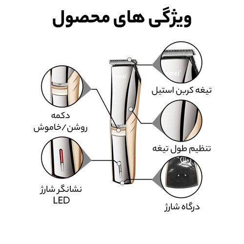 ماشین اصلاح موی سر و صورت تریمر کیمی مدل KM-5018، ضد آب کامل، منبع انرژی باتری قابلشارژ، اندازه اصلاح 0.5 میلیمتر، جنس تیغه اس