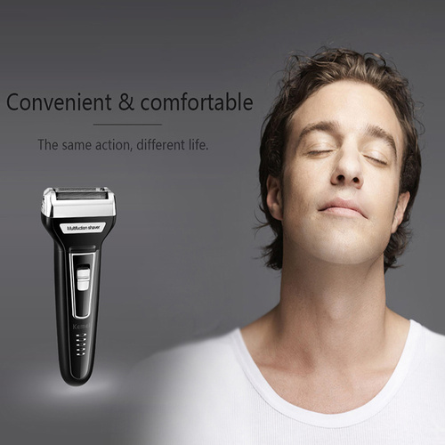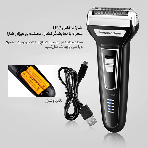 ماشین اصلاح موی صورت کیمی مدل KEMEI KM-6559 ( ریش تراش غلطکی ) ساخت شرکت KEMEI است. ماشین اصلاح کیمی مدل KEMEI KM-6559 دارای سه سری مخصوص که برای اصلاح صورت، سر و گوش بینی کاربرد دارد. سری قلتکی ماشین اصلاح کیمی برای اصلاح صورت ستفاده میشود با سری مخصوص اصلاح سر به همراه شانه می توان از ان برای اصلاح موی سر و صورت استفاده کرد. از سری دیگری که برای اصلاح گوش و بینی قرار داده شده می توان برای مرتب کردن گوش و بینی استفاده کرد 335 ماشین اصلاح موی صورت کیمی مدل KEMEI KM-6559 یک محصول چندکاره با کیفیت بوده که شرکت KEMEI به بازار عرضه کرده و قدرت موتور قابل توجهی دارد. این ماشین اصلاح کیمی شارژی بوده و با یکبار شارژ 60 دقیقه میتوان به طور مستقیم از ان استفاده کرد. ماشین اصلاح کیمی دارای نمایشگر شارز بوده و میزان شارژ را به شما نشان می دهد.ماشین اصلاح موی صورت کیمی مدل KEMEI KM-6559 با کابل USB شارژ می شود. ماشین اصلاح غلطکی کیمی دارای خط زن بوده و به راحتی میتواندی خط ریش خود را انکارد کنید. شما براحتی می توانید از این ماشین اصلاح در مسافرت استفاده کنید و بطور کامل پاسخگوی نیاز شما خواهد بود.