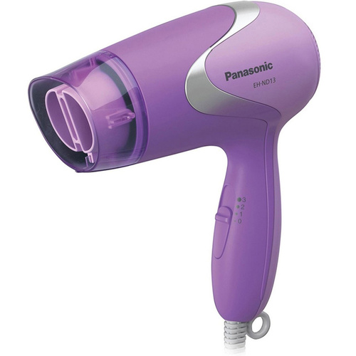 کسانی که صبح زود به حمام می‌روند، شاید وقت کافی برای خشک‌کردن موهای خود نداشته باشند. در این مواقع یک سشوار کوچک که سریع موها را خشک کند و سروصدای زیادی هم تولید نکند بهترین گزینه می‌تواند باشد. Panasonic EH-ND13 یک سشوار کوچک با موتور 1000 وات DC و دو متمرکز کننده‌ی هوا است که هرکدام استفاده‌ی مخصوص به خود را دارند. متمرکز کننده‌ای که مخصوص خشک‌کردن موها است از دو قسمت تشکیل شده است. قسمت بیرونی از پلاستیک شفاف و قسمت داخلی از پلاستیک مات ساخته شده است. هوا از قسمت وسط متمرکز کننده با فشار بیشتری بیرون می‌آید و باد ملایم از دور قسمت مرکزی خارج می‌شود. این نوع متمرکز کننده کمک می‌کند موها سریع‌تر و یکنواخت‌تر خشک شوند. متمرکز کننده‌ی دوم اما خروجی باریک‌تری دارد و با افزایش فشار باد، برای حالت دادن قسمتی از مو استفاده می‌شود.روی دسته‌ی سشوار دکمه‌ای قرار دارد که برای روشن/خاموش کردن و تنظیم دما و سرعت باد سشوار است. سه حالت ترکیبی برای سرعت و حرارت سشوار وجود دارد که شامل حالت توربو، حالت محافظت از مو و حالت باد سرد می‌شوند. این حالت‌ها هرکدام دما و سرعت مشخصی دارند و با توجه به جنس مو و استفاده‌ای که از سشوار می‌شود می‌توان یکی از آن‌ها را انتخاب کرد. حالت توربو حداکثر قدرت را برای خشک‌کردن سریع موها فراهم می‌آورد. حالت محافظت از مو با کنترل حرارت باد روی دمای 50 درجه‌ی سانتی‌گراد، از آسیب دیدن موها در اثر حرارت زیاد جلوگیری می‌کند. حالت باد سرد هم برای تثبیت حالت مو یا خشک‌کردن سریع‌تر موها با حفظ رطوبت مو استفاده می‌شود.طراحی کوچک و جمع‌وجور EH-ND13 برای حمل داخل کیف و چمدان مسافرتی بسیار مناسب است؛ مخصوصاً برای کسانی که به‌واسطه‌ی شغل خود زیاد به مسافرت می‌روند و نمی‌توانند وسایل زیادی با خود حمل کنند. دسته‌ی سشوار برخلاف بسیاری از سشوارهای مسافرتی خم نمی‌شود اما با ابعاد کمی که دارد جای زیادی داخل کیف و چمدان نمی‌گیرد. از ویژگی‌های ظاهری این سشوار باید به طراحی زیبا و دوست‌داشتنی آن اشاره کرد که در دست گرفتن و استفاده از آن را لذت‌بخش‌تر کرده است. به‌طور خلاصه‌سشوار پاناسونیک مدل EH-ND13 دارای موتور 1000 وات DC، دو متمرکز کننده، سه حالت ترکیبی سرعت/حرارت و حلقه‌ی آویختن است.