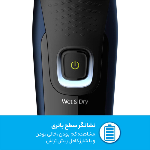 ماشین اصلاح موی صورت فیلیپس مدل S1323 از ریش‌تراش‌هایی است که از برش چرخشی برای اصلاح دقیق و سریع موی صورت استفاده می‌کند. این مدل دارای یک خط‌زن برای اصلاح خط ریش و مرتب‌کردن ریش و سبیل است. علاوه بر این، این دستگاه به صورت بی‌سیم عمل می‌کند و از باتری قابل شارژ استفاده می‌کند. برای شارژ باتری، آداپتور ارائه شده را مستقیماً به خود دستگاه وصل کنید. تیغه‌های چرخان ریش‌تراش در حین اصلاح روی صورت می‌چرخند و موها را از ته قطع می‌کنند. قسمت سری ماشین اصلاح صورت S1323/41 قابلیت شستشو تحت آب را دارد و می‌توانید خرده موهای روی آن را شستشو دهید. طراحی بدنه این دستگاه ارگونومیک است و وزن سبک آن باعث می‌شود در حین استفاده از دستگاه خسته نشوید و تجربه‌ی مطلوبی از اصلاح داشته باشید. با یک ساعت شارژ، می‌توانید از این مدل تا 45 دقیقه استفاده کنید و از ویژگی شارژ سریع در 5 دقیقه نیز بهره ببرید. همچنین، این ماشین اصلاح با تیغه‌های خود تیز شونده مجهز شده است.