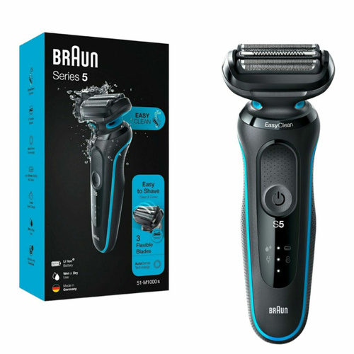 ریش تراش براون مدل 51M1000s با 3 عدد تیغه انعطاف پذیر به طور روان با خطوط صورت شما سازگار است. بیشترین سازگاری را با ریش شما پیدا می کند. در حالی که سیستم EasyClean تمیز کردن سریع و ساده را امکان پذیر می کند- بدون نیاز به برداشتن سر ماشین اصلاح.