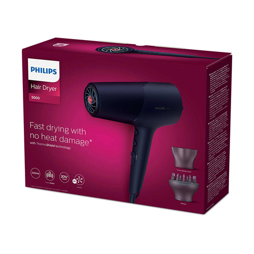 سشوار فیلیپس مدل BHD510 میان رده ای قدرتمند با موتور DC حرفه ای از پرفروش ترین سشوارهای شرکت فیلیپس میباشد این دستگاه با بهره گیری از فناوری ترمو شیلد ، دمای هوا به صورت پیوسته کنترل و بهینه سازی می شود تا از آسیب رسیدن به موها جلوگیری شود. به لطف این فن آوری بدون استرس موهای خود را خشک نمایید جریان قدرتمند هوای خروجی با 2300 وات توان ضمن حفظ سلامتی و محافظت از موها، آن ها را 20 درصد سریع تر خشک میکند . جریان هوای خروجی تا 110 کیلومتر بر ساعت سرعت دارد. سیستم یون ساز قدرتمند با چهار برابر توان یون سازی در هر بار خشک کردن موها تا حدود 80 میلیون یون تولید می کند تا موهایی درخشان و بدون وز داشته باشید . دارای خروجی هوای سرد برای حفظ حالت موها بازل باریک 11 میلیمتری و نیز دارای سری دیسپانسر برای حجم دهی به موها میباشد – طول سیم 1.8 متر میباشد – تمامی سشوارهای فیلیپس در کشور چین تولید میشوند - با توجه به مشخصات و قابلیتهای این دستگاه از سوپر برند فیلیپس انتخاب بسیار مناسبی میباشد.
