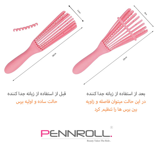 برس مو PRHT Flexy HD Brush از برند پنرول PENNROLL بهترین و مناسب ترین گزینه برای باز کردن گره ی موهای مواج و گره خورده ، فر یا فرفری ، مارپیچ ، خیس و مرطوب ، خشک ، چرب ضخیم و موهای بلند میباشد.