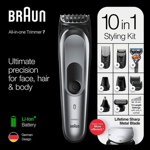 ست ماشین اصلاح موی صورت و بدن براون مدل mgk7221، اصلاح به صورت خط زن و حجم زن، ضد آب، منبع انرژی با باتری، تکنولوژی اصلاح به صور