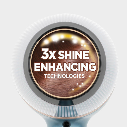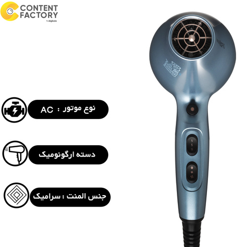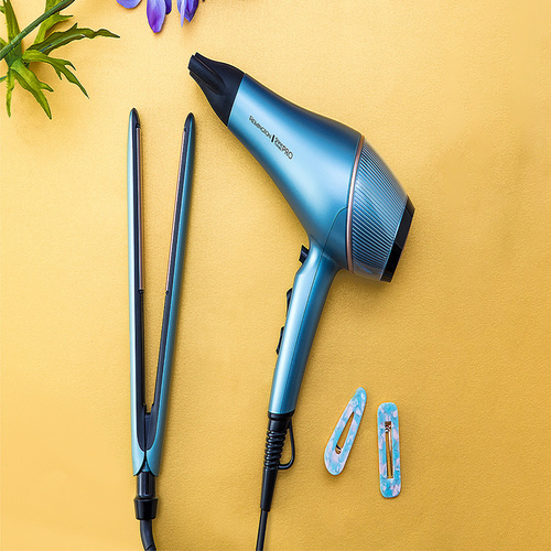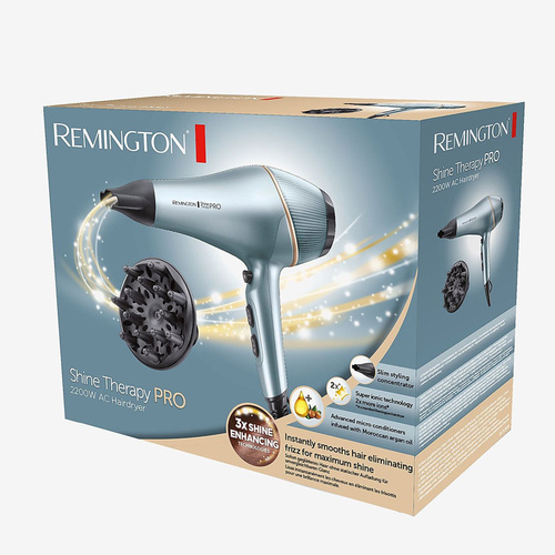 سشوارهای رمینگتون به کیفیت بالا و عملکرد ویژه معروف هستند. سشوار حرفه ای AC9300 با نام Shine Therapy Pro نه تنها موهای شما را حالت میدهد بلکه استفاده از فناوری خنک کنندگی سریع، باعث درخشان شدن موی سر شما میشود. این محصول از فناوری IONIC و یون ساز قوی بهره مند است که در این مدل 2 برابر دیگر مدلها تاثیر دارد. سری مخصوص استایل و دیسپنسر داخل جعبه نیاز شما برای خرید جداگانه را رفع مینماید. این محصول حرفه ای با 2200 وات قدرت و 2 سرعت و سه حالت داغ، گرم و خنک واقعی تمامی نیازهای کاربر حرفه ای را رفع می نماید. قدرت باد این سشوار 120 کیلومتر در ساعت می باشد که رکوردی جالب است. وزن سبک 850 گرمی سشوار نیز در طولانی مدت آسیبی به دستهای شما نخواهد زد. 3 متر طول سیم برق این محصول ، قابلیت جدا شدن و تمیز کردن فیلتر پشتی و محل قلاب ، آن را مخصوص استفاده از سالن نموده است.