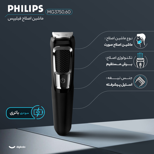 ماشین اصلاح موی صورت فیلیپس مدل MG3750.60، منبع انرژی باتری، تکنولوژی اصلاح به صورت تریمر، اندازه اصلاح 0.5 میلیمتر، مدت زمان ش