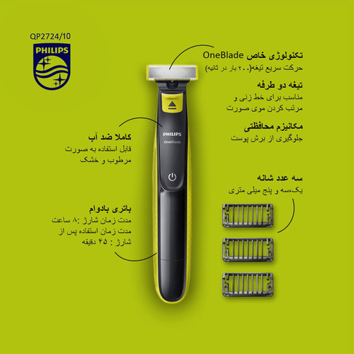 ریش تراش فیلیپسQP2724سری OneBlade از جمله جدیدترین مدلهای ماشین اصلاح موجود در بازار است که عملکرد بینظیر آن بسیار مورد توجه قرار گرفته است.این دستگاه قادر است چندین کار را برای شما انجام دهد که از این نظر دیگر نیازی به دستگاههای دیگر پیدا نمیکنید.