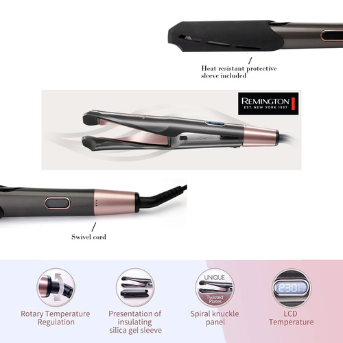 اتو مو رمینگتون مدل S6606 خاص ترین اتو موی شرکت رمینگتون میباشد دستگاهی چندکاره برای صاف کردن، حالت دادن و ایجاد فر بر روی موها میباشد. طراحی جذاب دستگاه با ایجاد انحنا بر روی صفحات موجب شده با قرارگیری موها در بین بخشهای مختلف این صفحات امکان اعمال مدل مدنظر به بهترین شکل ممکن فراهم باشد جنس بدنه و طراحی مواج جلوه خاصی دستگاه داده است.