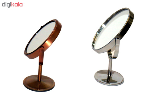 این مدل آینه یک آینه پایه دار استیل با صفحه بیضی و به رنگ نقره ای و مسی میباشد که علاوه بر کارایی زیبایی را نیز به همراه دارد. ارتفاع مدل استیل آن حدود 18 سانتیمتر، قطر آینه بیضی آن 9*11 سانتیمتر و قطر پایه آن 7 سانتی متر