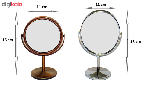 و مدل برنز آن با ارتفاع 16 سانتی متر و قر آینه گرد آن 9 سانتی متر میباشد میباشد. این آینه ها دو طرفه بسیار با کیفیت میباشد.