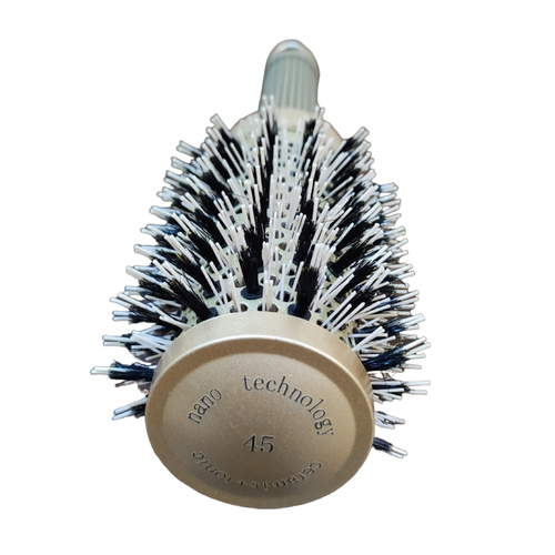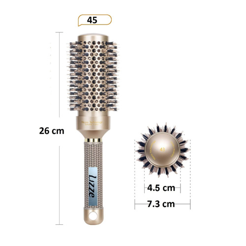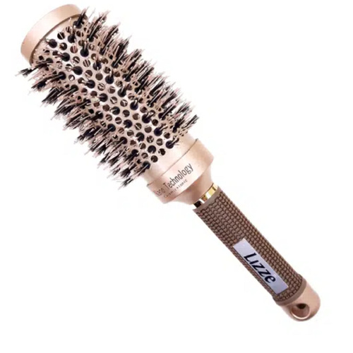 برس گرد برند LIZZE دارای سر سرامیکی می باشد . الیاف موی این برس از جنس نانو حرارتی و فناوری آیونیک تهیه شده است .اینم برس وِیژه سشوار کشیدن جهت خشک کردن ، فرکردن ، حالت دادن ، براق کردن و ... می باشد . سایز سری این برس 45 از جنس سرامیک می باشد .برس گرد سرامیکی نانو تکنولوژی محصولی است مقاوم در برابر حرارت که این دسته از برسها با نام برسهای حرارتی شناخته شدهاند که برای سشوار کشیدن قابل استفاده خواهد بود.کریستال های موجود در پوشش تورمالین لوله این برس، با گرم شدن سشوار تبدیل به منبع طبیعی یون های منفی می شوند.بنابراین بار یون های مثبت را که به طور معمول در مو یافت می شوند را خنثی می کنند.سپس اثر الکتریسیته موجود در ساختار مو را به راحتی تمام از بین خواهد برد.این محصول به دلیل دارا بودن یک بدنهای سرامیکی قابلیت دو برابر کردن حرارت در هنگام براشینگ را دارد.