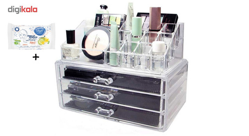 استند لوازم آرایش مدل Cosmetic همراه با 20 عدد دستمال مرطوب پاک کننده آرایش