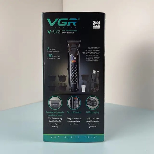 ماشین اصلاح موی سر و صورت وی جی ار مدل V-972، اصلاح به صورت خط زن و حجم زن، قابلیت تنظیم سرعت، منبع انرژی با برق و باتری، تکنولو