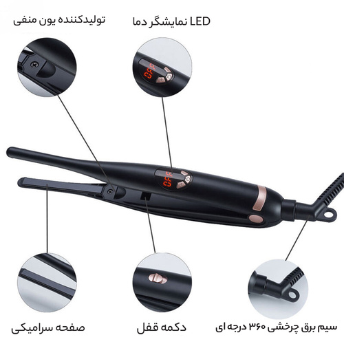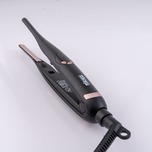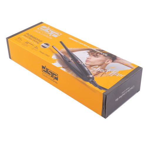 اتو موی «دی اس پی» (DSP) مدل «10443» جزو اتو موهای باریک است که برای موهای کوتاه مناسب هستند. ابعاد صفحات اتو مو 8×75 میلیمتر می باشد. قسمت دستهی اتو مو عریضتر است تا دردستگرفتن آن مشکل نباشد. دکمهی روشن/خاموش اتو مو روی دسته آن قرار دارد و در کنار آن، چراغ نشانگر دستگاه دیده میشود. دمای صفحات اتو مو را میتوان به کمک کلیدهای آن تنظیم کرد. کمترین دمای قابلتنظیم 120 درجه و بیشترین دما 210 درجهی سانتیگراد است که بازهی دمایی گستردهای را تشکیل میدهند. سیم برق دستگاه 1٫2 متر طول داشته و در محل اتصال به بدنه، قابلیت چرخش دارد. این قابلیت علاوهبر جلوگیریکردن از گرهخوردن سیم و فرسودهشدن زودهنگام آن، کارکردن با دستگاه را نیز آسانتر میکند. طراحی این اتو مو بهگونهای انجام شده است که کمترین وزن ممکن را داشته باشد تا دردستگرفتن و استفاده از آن راحتتر شود؛ همچنین بتوان آن را با خود به مسافرت برد. . بهطور خلاصه اتو مو دی اس پی 10443 دارای صفحات باریک، دمای قابلتنظیم از 120 تا 210 درجهی سانتیگراد، سیم بلند 1٫2متری با طراحی مناسبی که دارد، برای استفادهی افرادی با موی کوتاه بسیار مناسب است.