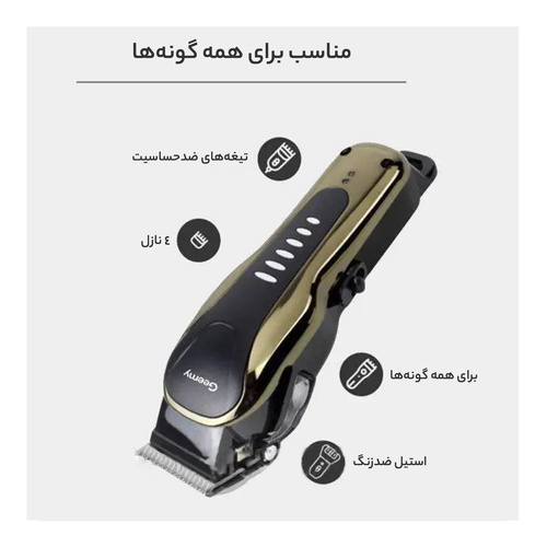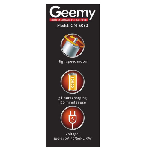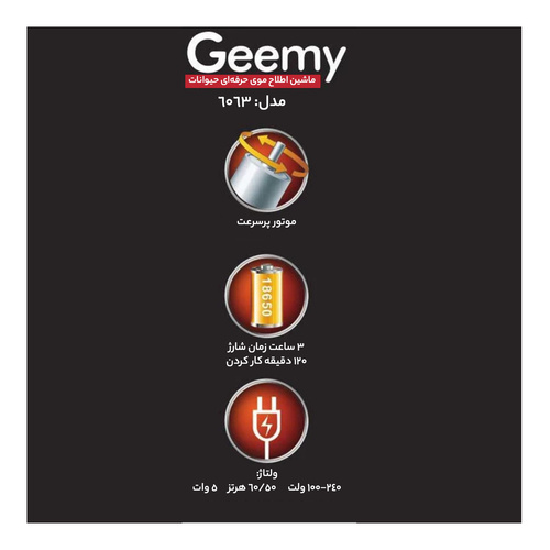 ماشین اصلاح حیوانات مدل جیمی 6063 مخصوص اصلاح موی حیوانات ( گربه و سگ ) میباشد این مدل دارای تیغه های مخصوص و 4 عدد شانه به سایز های 3 -6 - 9 - 12 میباشد همچنین در داخل جعبه ناخن گیر و سوهان ناخن و روغن و برس تمیز کننده قرار داد تا اصلاح کامل را برای حیوان ( گربه و سگ ) داشته باشد این دستگاه مزیتی که دارد این است که در صورت نداشتن شارژ برای اصلاح با 5 دقیقه شارژ کردن میتوان باسیم از آن استفاده کرد حتما قبل از اصلاح باید روی تیغه ها به مقدار کافی روغن زده شود