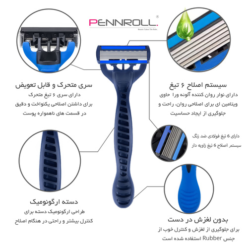 طراحی دسته خودتراش پنرول کاملاً ارگونومیک و خوشدست است تا هنگام اصلاح، بدون هیچ زحمتی آن را کنترل کنید. پوشش رابر (Rubber) در قسمت روی دسته، از لغزش و سر خوردن خودتراش جلوگیری کرده و حتی در شرایط مرطوب، کنترل و تسلط شما را حفظ میکند.