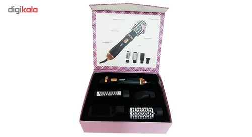 مشکل بسیاری از خانم ها در حین سشوار کشیدن موهای خود ، نگه داشتن همزمان برس و سشوار در دست است که معمولا برای این کار نیازمند کمک می باشند ، به همین خاطر این محصول از کمپانی خوش نام dsp می تواند این مشکل را حل نماید. سشوار چرخشی dsp مدل E_50001 با دارا بودن چهار سری مختلف قابل تعویض کمک می کند تا موهای شما صاف و یا حالت دار گردند. امتیاز بعدی داشتن سری چرخشی در 2 سایز مختلف می باشد که با توجه به حجم مو ، می توان سایز مورد نظرتون را انتخاب کرده و به راحتی و حتی با یک دست موهای خود را حالت دار و یا صاف کنید و در میهمانی بدرخشید.از ویژگی های دیگر این محصول هم می توان به سیم چرخشی 360 درجه ، امکان چرخش برس در 2 جهت مختلف ، طراحی ارگونومیک و تنظیم دما اشاره کرد.ویژگی بعدی، پکیجینگ کادویی این محصول می باشد که علاوه بر استفاده شخصی ، می تواند انتخابی مناسب برای هدیه به عزیزانتون هم باشد.سشوار های چرخشی نسل جدید از سشوارها هستند ، که علاوه بر قابلیت تولید باد گرم میتوانند با استفاده از برس های که قابلیت تعویض و چرخش دارند و در یک جهت به دلخواه کاربر حرکت میکنند ، علاوه بر خشک نمودن مو به آن حالت دهند . در صورتیکه بتوانید قابلیت های این دستگاه را بشناسید میتوانند مانند یک آرایشگر حرفه ای در مدت بسیار کوتاهی موهای خود را حجم دهی ، خوش حالت ، فر یا صاف نمایید.سشوار چرخشی دی اس پی با طراحی و ترکیب رنگ بی نظیری که دارد یک محصول فوق العاده زیبا و خوش دست است و میتوانید بهترین و خوش سلیقه ترین سشوار برای هر خانه وسالن باشد.