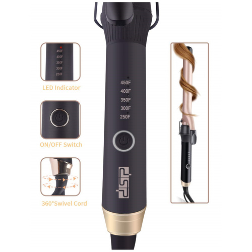 .فر مو 9 میلی متری دی اس پی دارای قابلیت تنظیم 5 دمای مختلف است و درجه فارنهایت می باشد، که بسته به نوع مو می توان دمای مورد نظر را انتخاب نمود. طیف دمایی 250F تا 300F مناسب موهای ظریف، دکلره شده و آسیب دیده می باشد.